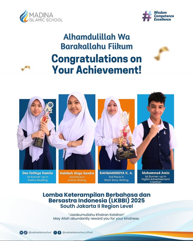 Assalamu’alaikum Warahmatullahi Wabarakatuh, Ayah-Bunda yang dirahmati Allah, Di tengah dinamika kehidupan pendidikan yang kian kompleks, selalu ada secercah kabar gembira yang menguatkan semangat kita sebagai orang tua, pendidik, dan pembina peradaban. Hari ini, izinkan kami berbagi kabar yang sangat membanggakan dari keluarga besar Madina Islamic School. ALHAMDULILLAH wa SYUKRULILLAH! Dengan penuh rasa syukur dan bahagia, […]